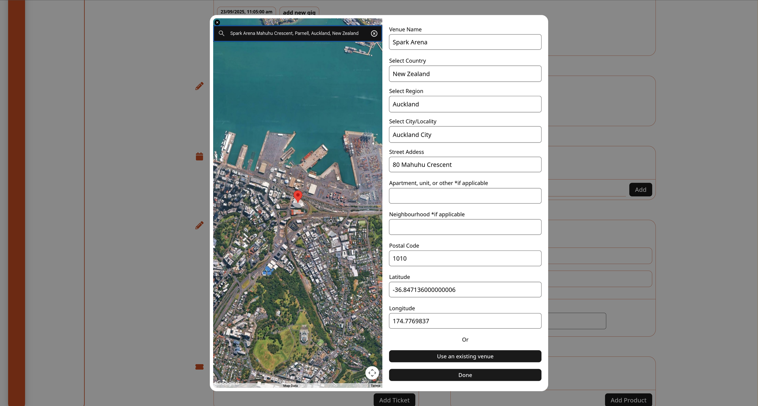 The system supports integrated ticketing, merchandise, and access control, alongside artist and genre tagging, age restrictions, and invite-only workflows. Administrative tools allow real-time updates, postponements, cancellations, and sales tracking, ensuring operational clarity across the event lifecycle.